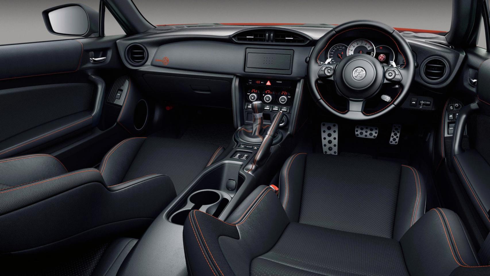 En el interior los cambios son mínimos, limitándose a la tonalidad naranja de las costuras de los asientos, volante, puertas y pomo de la palanca. Mecánicamente tampoco hay cambios, por lo que se mantiene el 2.0 bóxer de cuatro cilindros y 200 CV de aspiración atmosférica, con el que el GT86 es capaz de acelerar de 0 a 100 km/h en 7 segundos.