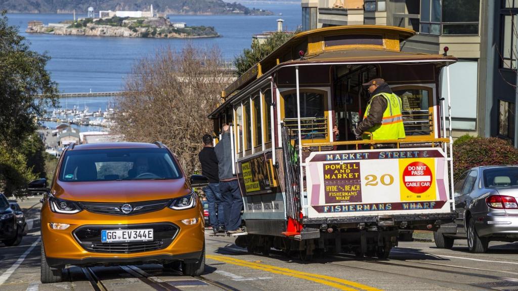 No fue una casualidad que Opel eligiera las calles de la ciudad de San Francisco para sacar alguna de las imágenes oficiales de su Ampera-e. El fabricante germano, hasta ahora en manos de General Motors y actualmente propiedad del Grupo PSA, mostraba lo que era su desafío a Tesla, precisamente muy cerca de la base de operaciones de la firma de Palo Alto. El Ampera-e demostraba que podía conseguir con su propia tecnología niveles de autonomía similares a los de los estadounidenses.