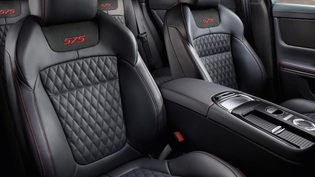 Exteriormente, contará con nuevos acabados, entre los que se encuentran los nuevos tonos de pintura para la carrocería azul Velocity o el gris Satin Corris. Además, recibe nuevos elementos aerodinámicos, entre ellos un vistoso alerón posterior, un renovado splitter delantero y modificaciones en las defensas, tanto frontales como posteriores. Las nuevas branquias en el capó, las llantas de 20 pulgadas y las pinzas de freno rojas que se pueden entrever a través de ellas dejan claro que no estamos antes un Jaguar más, el XJR575 va un paso más allá.