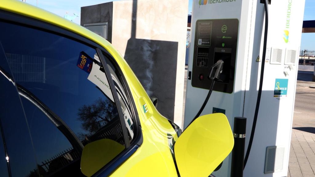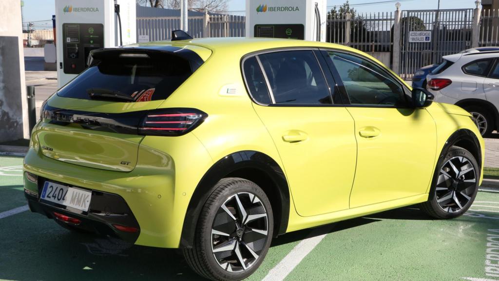 El nuevo Peugeot E-208 en un punto de recarga pública de Iberdrola.