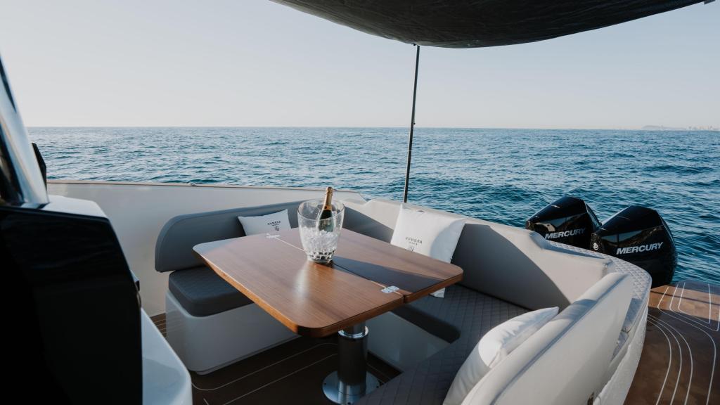 Con el astillero en Almería y sede en Barcelona, el Kumbra 34, de 9,72 metros de eslora y 3,50 metros de manga, destaca por su amplitud y cuidada distribución interior y exterior, con capacidad para hasta 14 personas. Ofrece dos cabinas, una cama de matrimonio convertible en sofá, otra con dos amplias camas individuales en popa, un baño completo y un cómodo salón, apostando por la comodidad sin renunciar al estilo. Además, su diseño de cubierta maximiza las zonas de solárium y relax, ideal para largas jornadas de navegación.