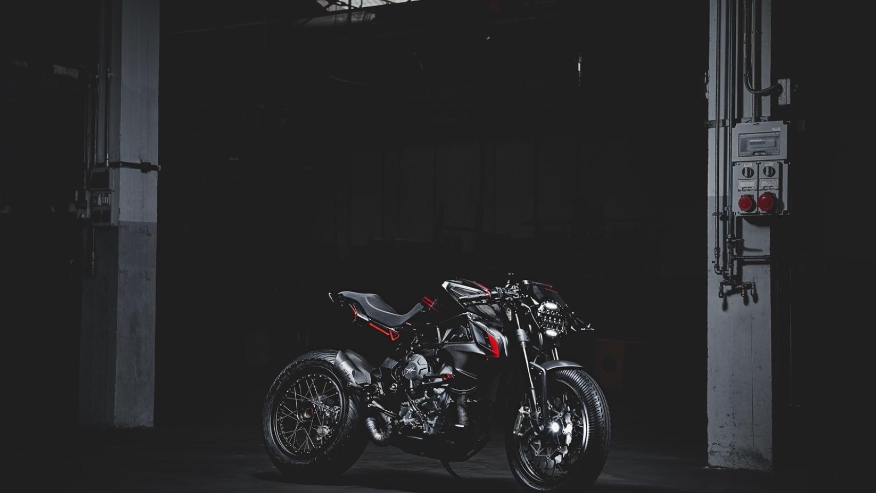Invariable, el basculante monobrazo que ha encandilado a no pocos aficionados a las dos ruedas, al que se ha sumado un escape S1 de SC-Project, proveniente de la competición, concretamente, es el mismo que utiliza MV Agusta en el Mundial de SBK. La estética se ve coronada con una imagen muy oscura, con pequeños toques detalles en rojo que atraen la mirada a los puntos que quiere destacar el diseñador, William Melzi, en esta Blackout
