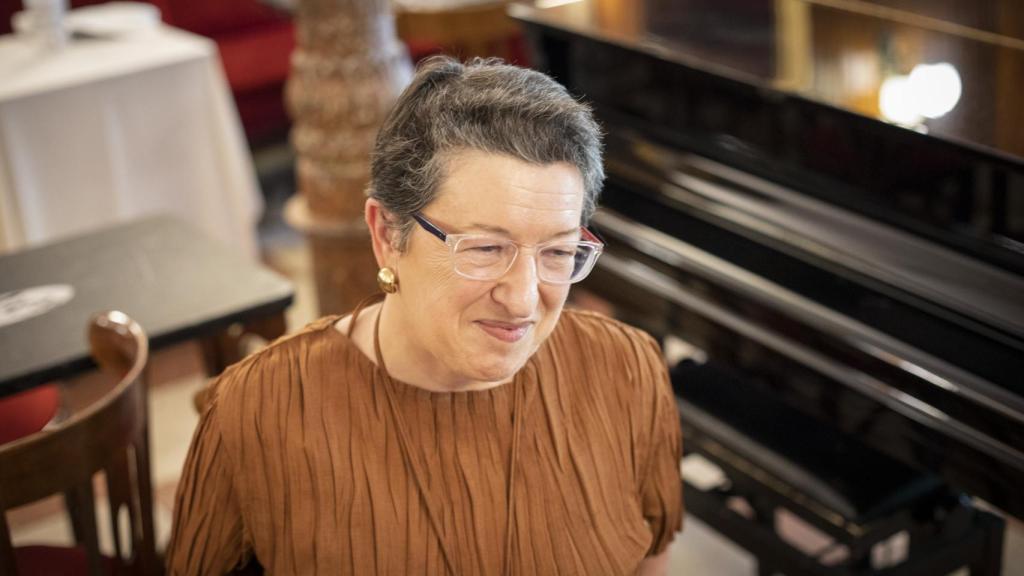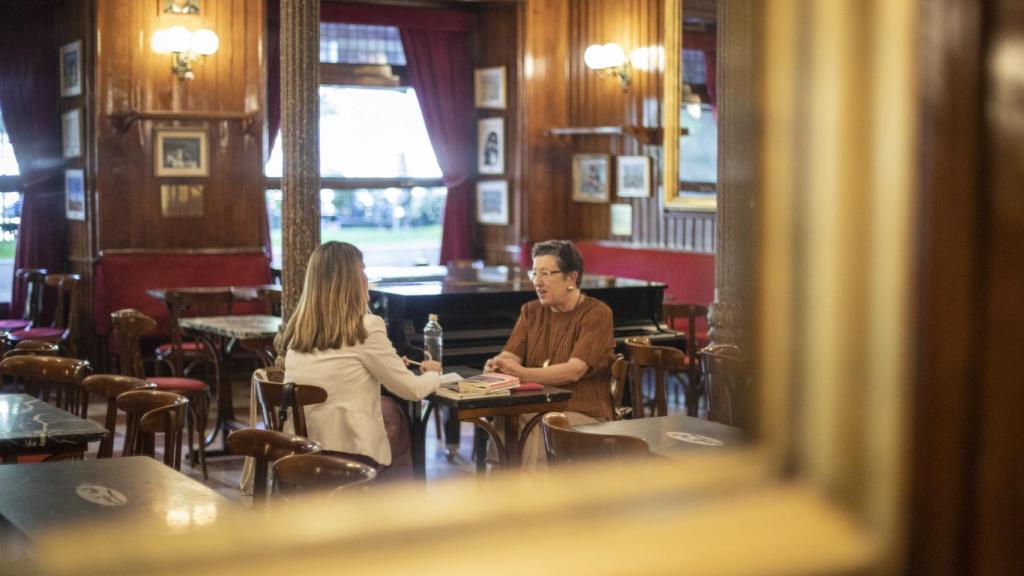 Laura Freixas durante la entrevista en el Café Gijón de Madrid.