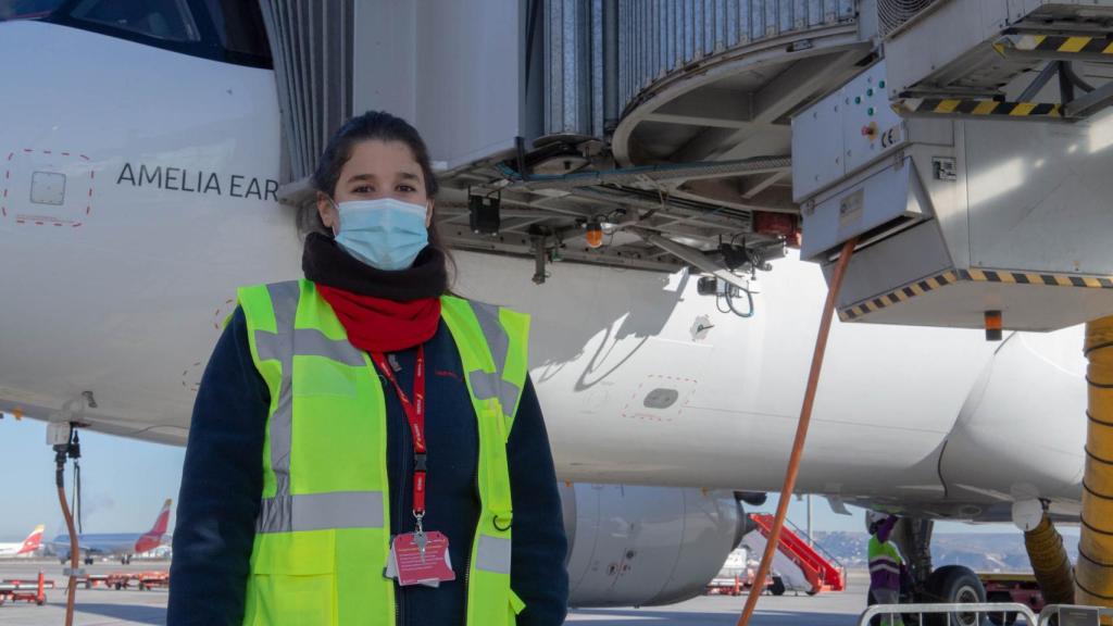 Sara Gutiérrez Chamón es coordinadora en el aeropuerto de Barajas y se encarga de que el avión tenga todo listo y a su hora antes de despegar.