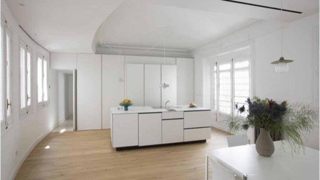 La mujer tampoco está en la cocina, sino que todos estamos en el mismo espacio y compartimos las actividades. Obligatoriamente, la cocina tiene que estar integrada en el espacio principal de la vivienda y usar esos metros cuadrados que tenemos de espacio común para cocina, para comer, para descansar o para trabajar en la misma mesa, rentabilizando ese espacio. No hace tanto, la gente tenía más de una cocina y más de un salón.