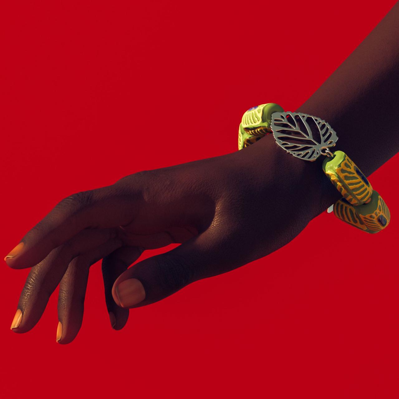 Este avatar es también el modelo de la colección de moda de edición limitada creada en colaboración con Rebecca Zoro, diseñadora de moda marfileña. La diseñadora ha utilizado materiales locales y se ha inspirado en su herencia y cultura africana. El resultado son cinco piezas exclusivas, a la venta el día 1 de octubre.