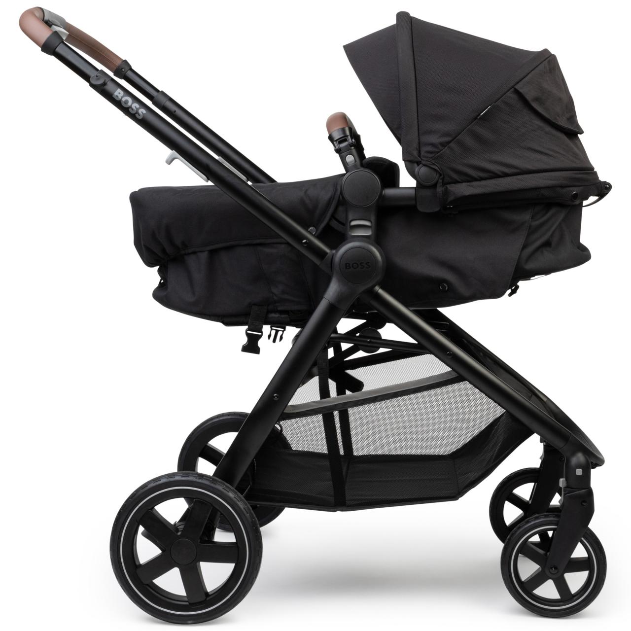 Este carricoche 2 en 1 de BOSS tiene un asiento reversible y un respaldo ajustable a una posición reclinable. Tiene asa acolchada, funda extraíble, reposapiés ajustable y capota reclinable. Incluye portavasos, protección integral y mosquitera (desde 1.205 € en Kids Around).
