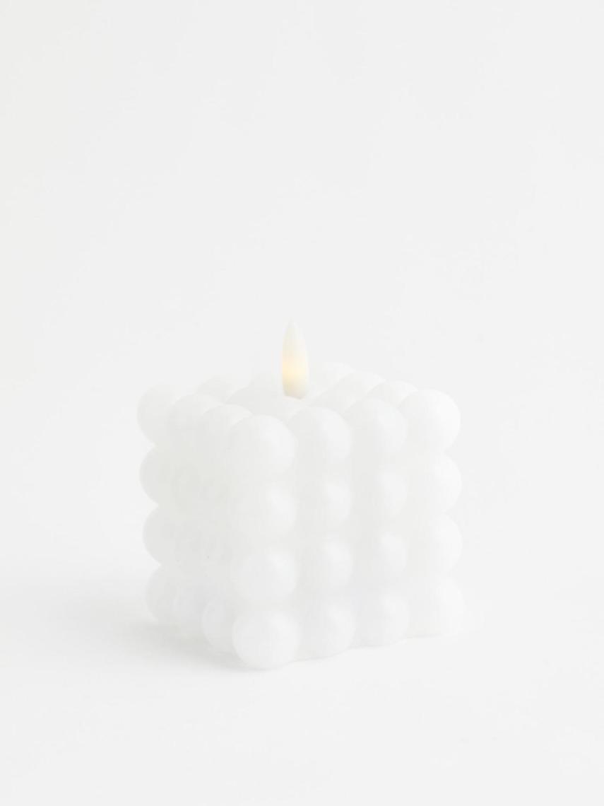 Aunque las velas tradicionales siempre sean un acierto por su estética y su capacidad de "relajar" el ambiente, este modelo de LED a pilas con textura de pompas y cálida llama blanca de la serie Flamme de Star Trading encontrará naturalmente su lugar en tu casa. Práctico y moderno a la vez (8,99 €).