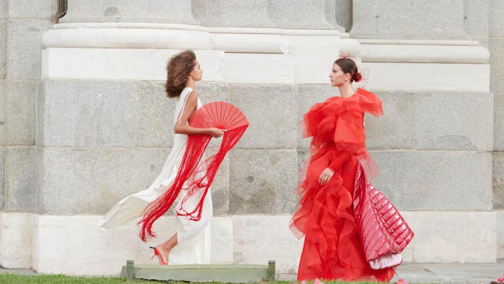 En ese escenario mágico, durante el atardecer, cincuenta modelos mostraron las propuestas de 26 diseñadores. Un desfile espectacular con guiños al folclore y a la artesanía madrileña, al Madrid de los cuadros de Goya.