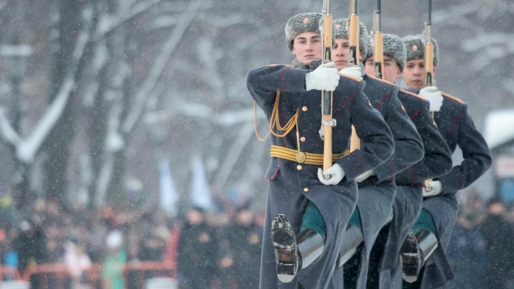 La parada militar, la primera para conmemorar el fin del bloqueo, se celebró en la histórica plaza del Palacio con la participación de más de 2.500 militares, carros blindados, sistemas de misiles antiaéreos y tácticos, según informó el mando de la circunscripción militar Oeste.