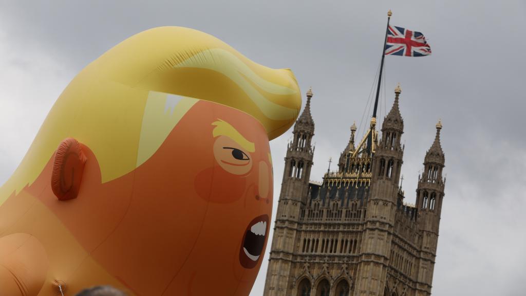 La nueva versión del "Baby Trump", el globo gigante que se burla del presidente de EEUU, Donald Trump, y otro robot enorme que también lo parodia, comenzaron este martes a circular por Londres como parte de las protestas previstas contra la visita de Estado del mandatario republicano en decenas de ciudades por todo el país como Glasgow, Oxford, Edimburgo o Birmingham.