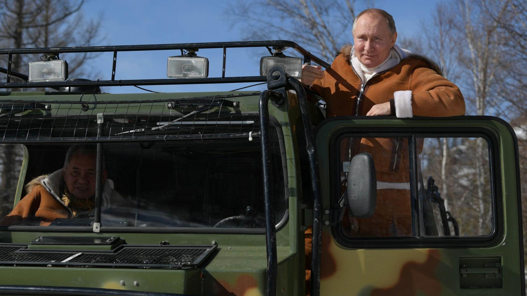 Además de hacer senderismo, Putin y Shoigú también usaron un todoterreno para recorrer los bosques siberianos.