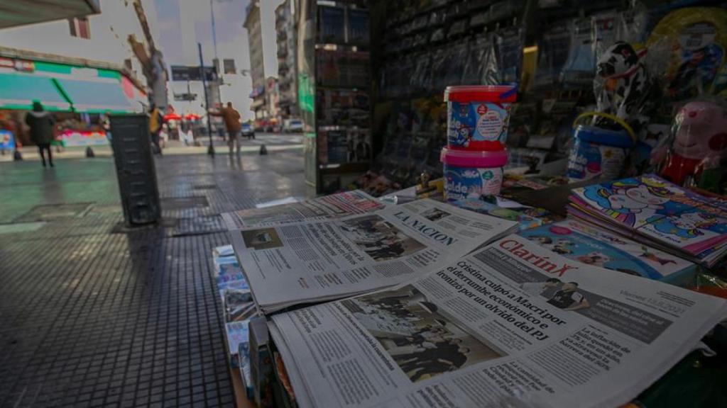 Portadas de los periódico Clarín y La Nación en un puesto de venta del centro de la capital. EFE