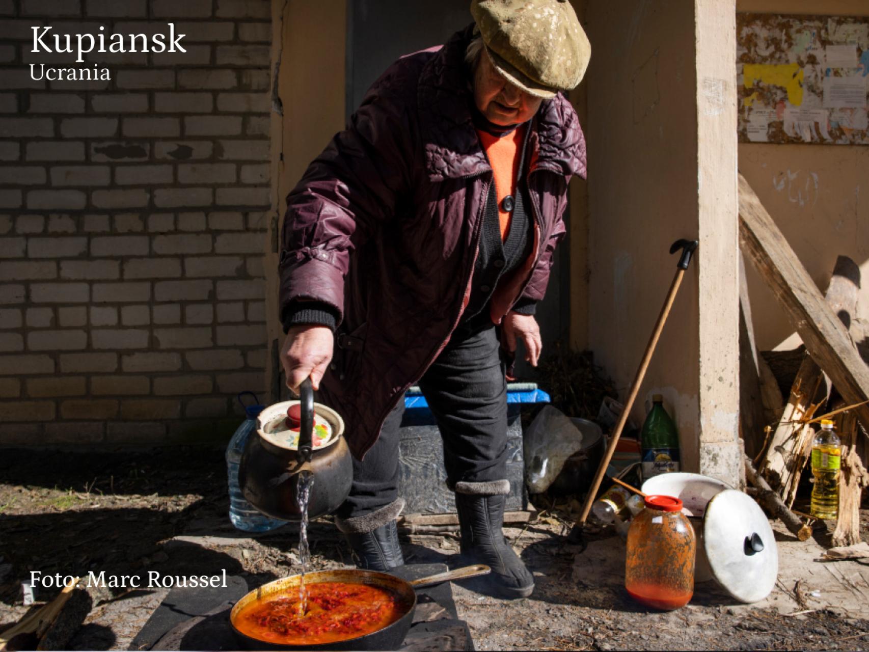 No hay gas. No hay electricidad. Sólo troncos de árboles que su marido corta para leña. Y una bolsa de tomates, acompañada de un tarro de kvas de remolacha, que revuelve en la acera. Nos enseña a no confundir el borsch ucraniano con el ruso. La mujer se afana. Le pone empeño. Pero tiene la expresión ausente de alguien que no tiene ganas ni de vivir ni de morir.