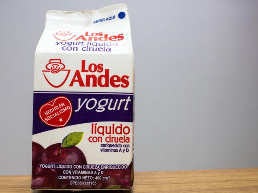 Recibe un kilo de leche de una de las marcas del Estado. Lo revisa desconfiada, porque conoce de las historias de la mercancía que es adulterada en el mercado negro. Ese producto también está marcado con el corazoncito rojo, el que recuerda que aquello está "hecho en socialismo".