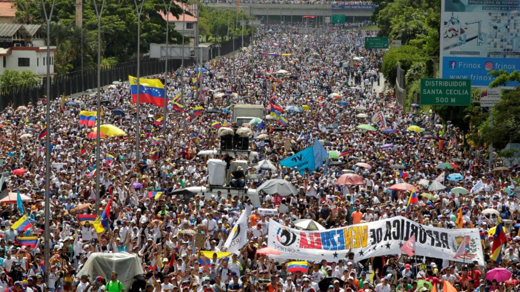 Entretanto, Maduro 'contraprograma' la manifestación con otra de partidarios y llama a "ganar la Constitución".