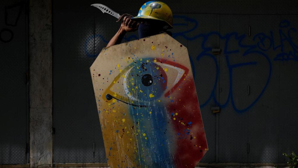 Los escudos se emplean para construir barreras en las marchas que desde hace más de 90 días recorren las calles de Venezuela. Hasta 86 personas han perdido la vida en los enfrentamientos entre los manifestantes y la Policía, según el último balance de la fiscalía.