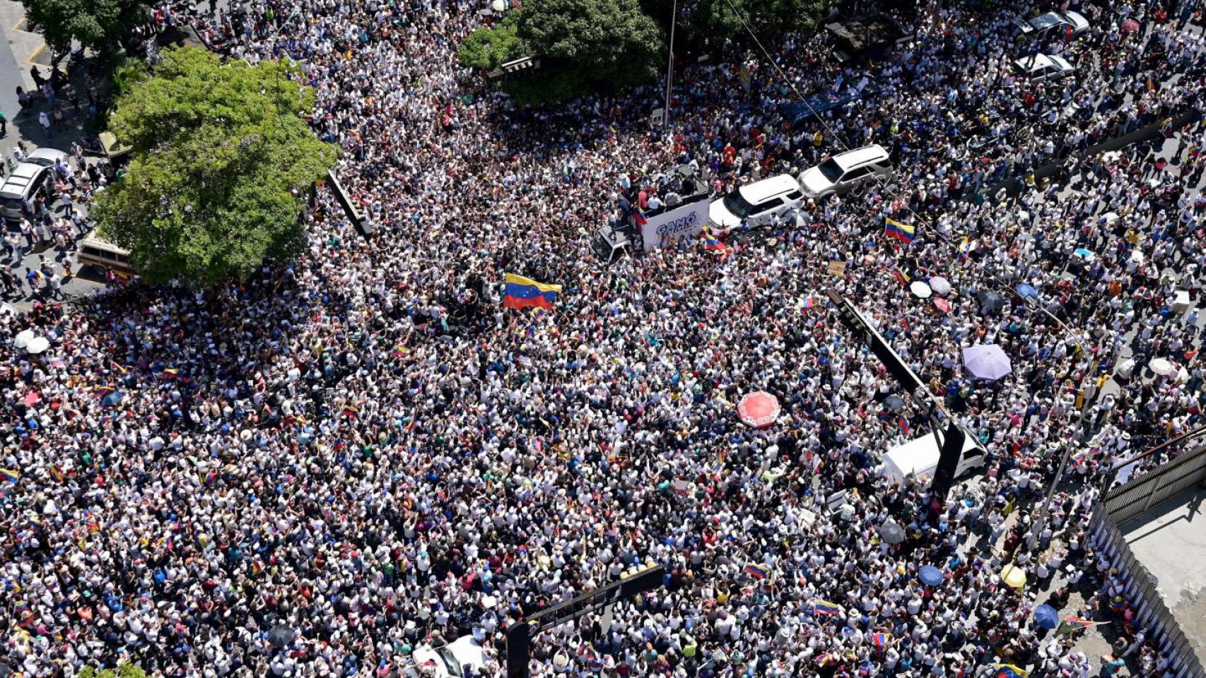 Imagen de las calles de Caracas en la manifestación con el régimen de Nicolás Maduro, este sábado.