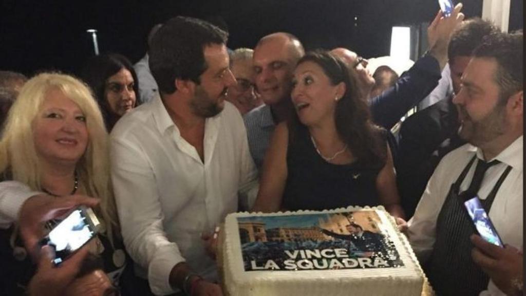 Vino blanco, pescado y una tarta en la que se leía "El equipo gana" sirvieron a Mateo Salvini y 260 miembros de su partido para celebrar una festividad italiana la noche del derrumbe del puente Morandi en Génova.