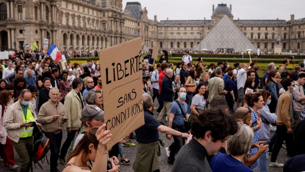 Con gritos y carteles que denunciaban lo que consideran "dictadura sanitaria", pidiendo "dejad en paz mi cuerpo" o "libertad" o denunciando que "la Covid mata la democracia", los manifestantes desfilaron para mostrar su descontento. La mayoría, sin mascarilla y sin respetar la distancia de seguridad.