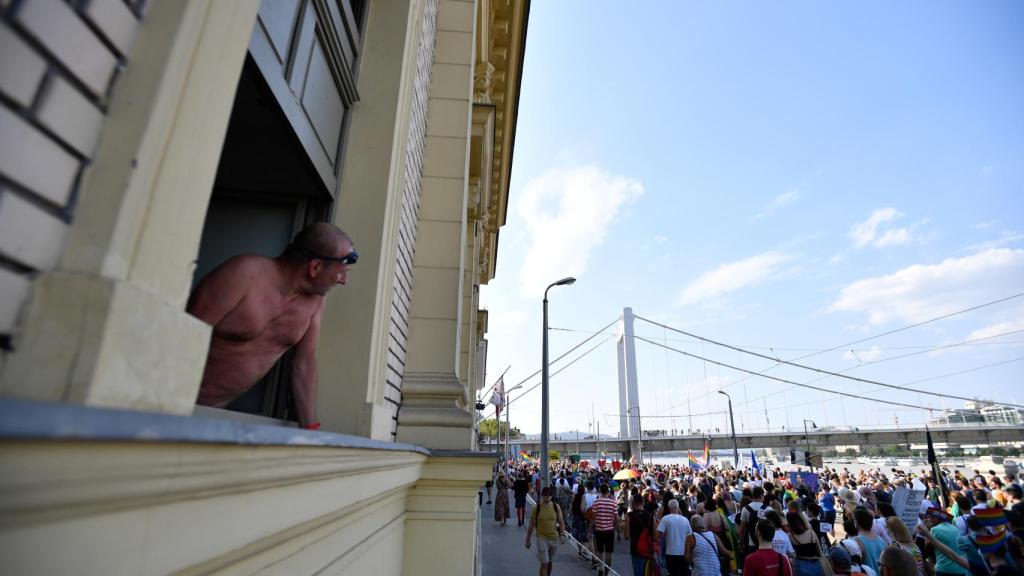 Miles de húngaros -más de 10.000, según medios locales- de todas las edades se unieron al desfile que recorrió el centro de la capital magiar en solidaridad con una comunidad sacudida por una controvertida nueva ley que, adoptada en junio, vincula la homosexualidad con la pederastia.
