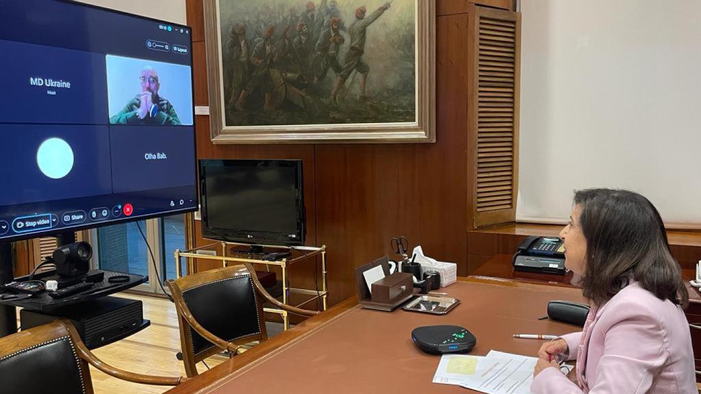 La ministra de Defensa, Margarita Robles, y su homólogo ucraniano, Oleksii Reznikov, han mantenido, desde las sedes de sus respectivos departamentos, un nuevo encuentro por videoconferencia en el que han abordado la situación actual en Ucrania y diversos aspectos de la ayuda militar que España viene prestando a este país desde el comienzo de la invasión rusa.