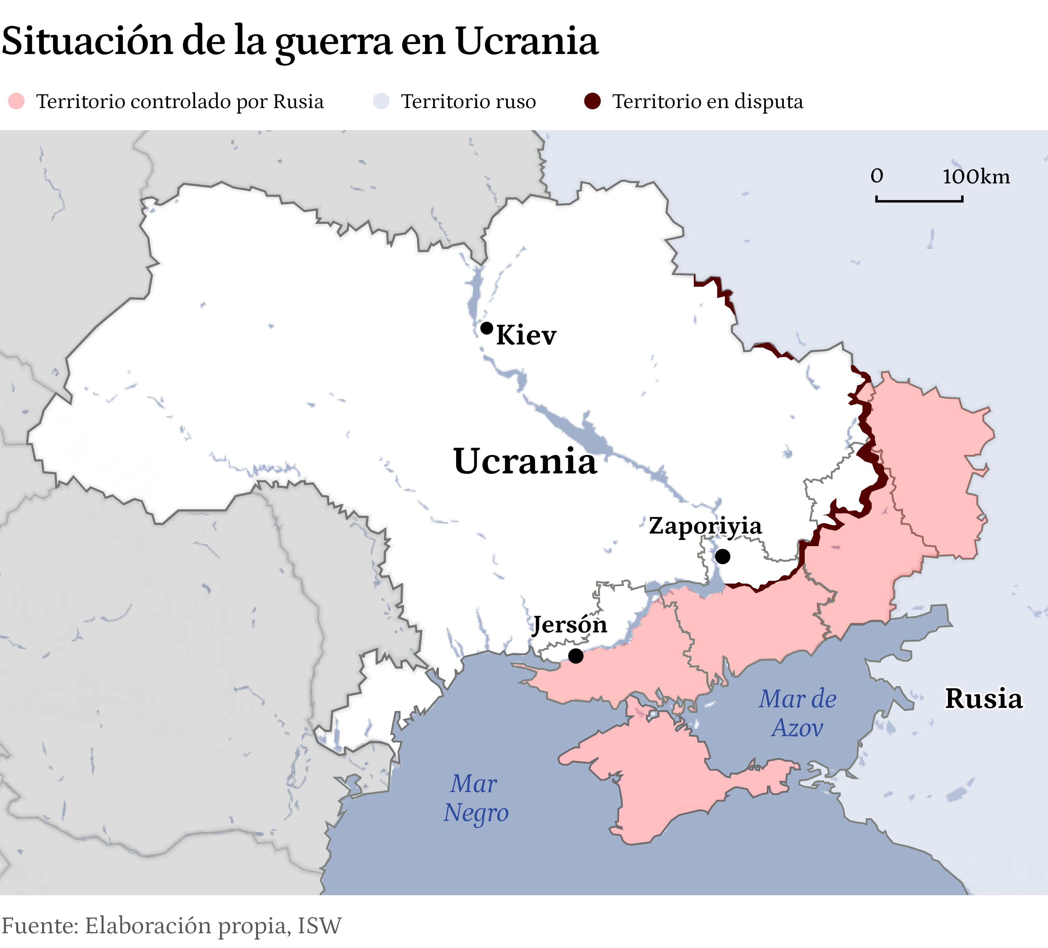 Tres años y medio después del inicio de la invasión a gran escala, Rusia controla alrededor de 114.500 kilómetros cuadrados de Ucrania. Cerca del 20 por ciento de la superficie terrestre del país, incluyendo Crimea. Las tropas rusas también mantienen posiciones adelantadas en las regiones de Járkiv, Sumy, Mykolaiv y Dnipró. Mientras tanto, las fuerzas ucranianas defienden Sloviansk y Kramatorsk, convertida en la capital oficiosa del óblast de Donetsk.