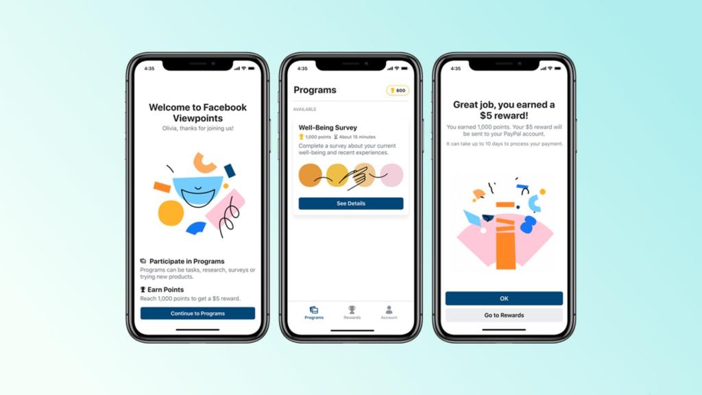 La nueva app de Facebook, Facebook Viewpoints, quiere que respondas encuestas para dar información sobre ti y conseguir dinero a cambio.