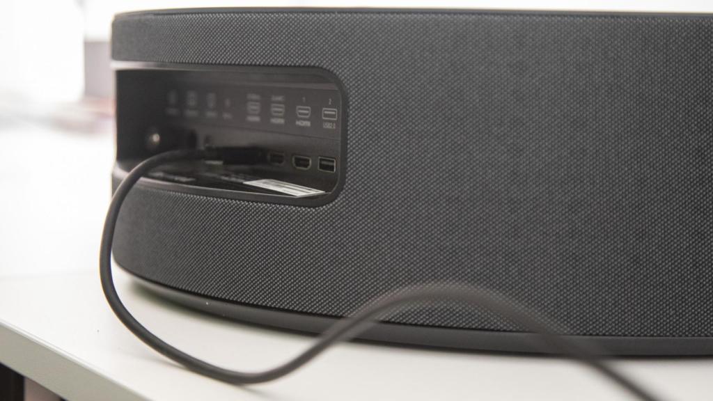 El televisor no se priva de nada en este aspecto. En la base cuenta con tres salidas HDMI, dos USB, AV in, salida óptica, antena y toma de internet (aunque también tiene WiFi). Por su parte el altavoz, además de buen diseño, tiene presencia y llena la sala y es compatible con Dolby Atmos.