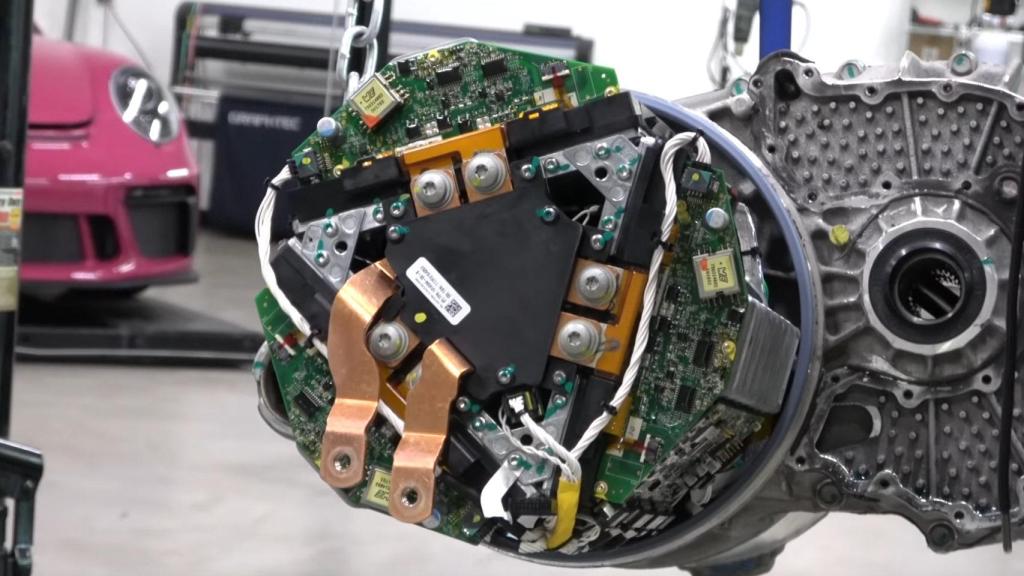 Estas placas y chips formarían el ordenador que gestiona la energía eléctrica proveniente de las baterías, a través de un puerto en el extremo del motor.