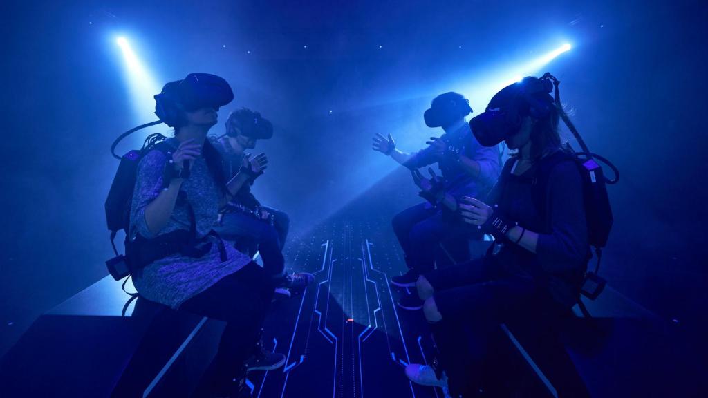 Antes de empezar la experiencia los técnicos nos ayudaron a ponernos la mochila de realidad virtual de HP, unas gafas de realidad virtual VivePro y sensores de movimiento en ambas manos y piernas. Cabe recalcar que el videojuego se juega en equipo, normalmente de cuatro personas.