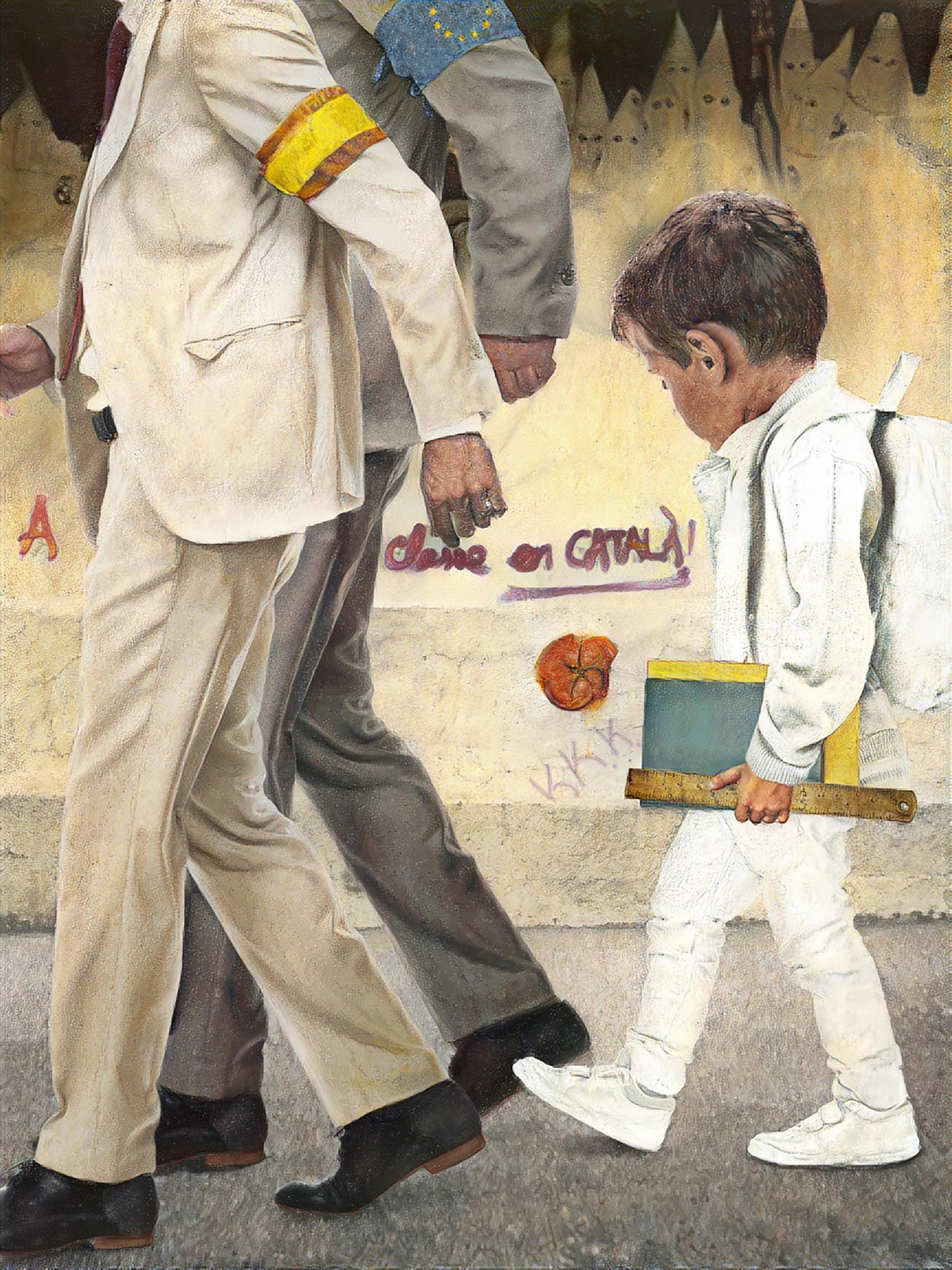 Rockwell tituló su ilustración The problem we all live with, el problema con el que todos convivimos. Habrá sido cosa del subconsciente o reverberación de su reciente periplo norteamericano, el caso es que no ha debido ser por casualidad que en su magnífica viñeta del viernes, Tomás Serrano haya proyectado la silueta infantíl del “valiente de Canet” sobre la fachada de la Generalitat, y haya puesto en su boca estas palabras: "President, tenim un problema".