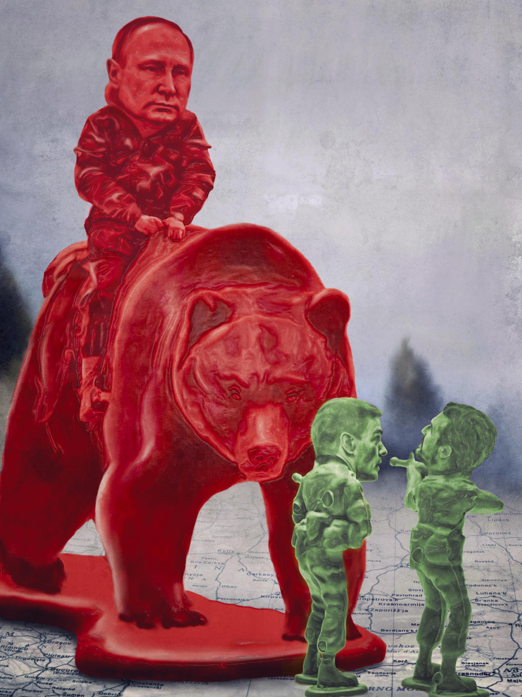 O sea, ver reducidos a la OTAN, Estados Unidos y la Unión Europea al rol de espectadores pasivos de la agresión a una pequeña democracia que bracea desesperadamente por no sucumbir ante los zarpazos del oso ruso. Ucrania ha sobrevivido a la mutilación que supuso la anexión de Crimea, trata de retener la región secesionista del Donbás, equivalente a los sudetes checos, y busca el apoyo del mundo libre —si es que aún es capaz de honrar este adjetivo— para proteger sus fronteras.