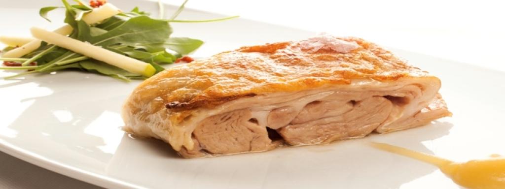 Paletilla de cordero lechal. Lo mejor es cocinarlo a 65º C durante 11 horas utilizando la función horno vapor. Se deshuesa después y se enrolla sobre film dejando forma de paletilla. Meter en una bolsa de vacío y pasteurizar 25 minutos a 65º vapor para luego enfriar en agua y hielo rápidamente. Para la salsa se prepara un fondo con los huesos y la falda del cordero y se cuela. Se añade cebolla tostada a la brasa y se infusiona en la salsa. Cuando ya esté fría se liga con maicena y un 1 gramo de xantanar.