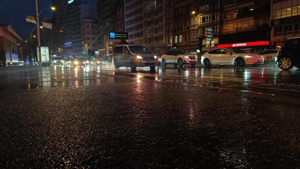Un servicio VTC, a la izquierda, circula por la ronda de Nelle de A Coruña.