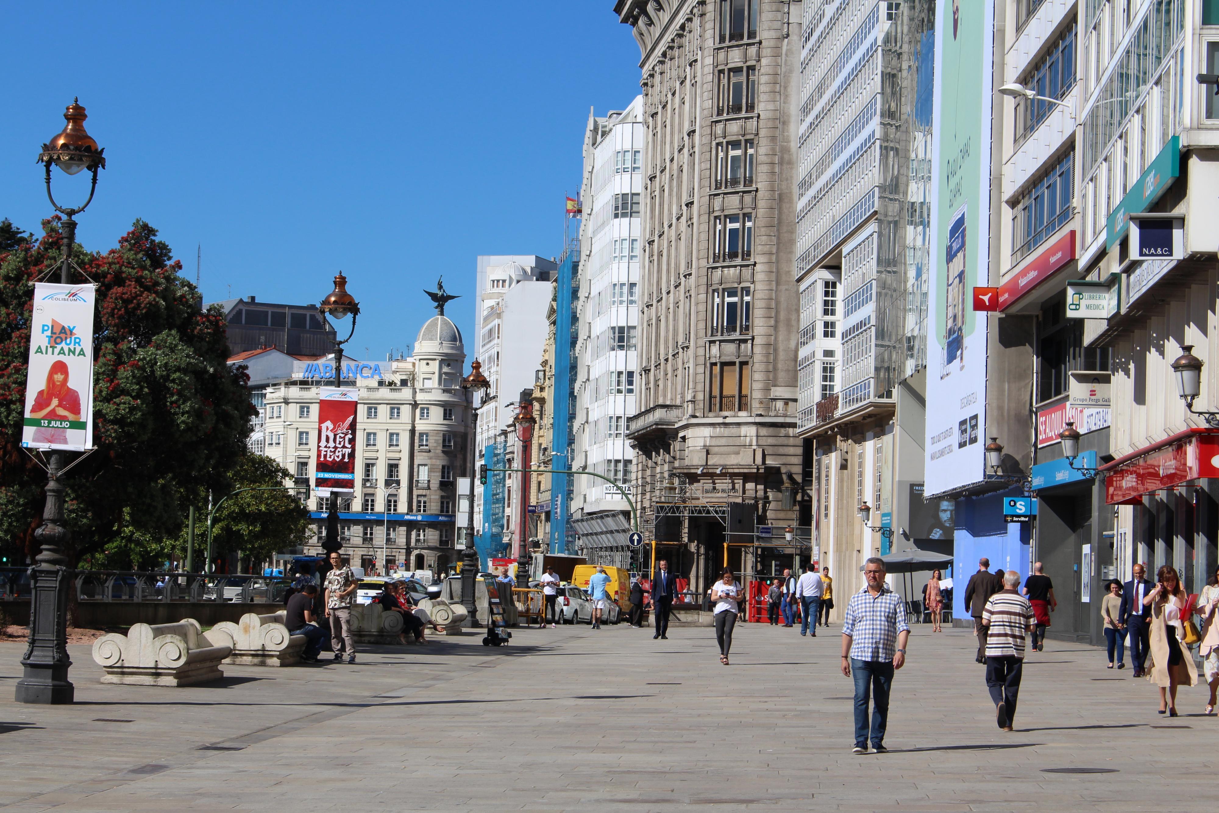 Día de temperaturas récord en lo que va de año en A Coruña. A las diez de la mañana, los termómetros ya marcaban 28 grados, alguno incluso 29. La gente se cobijaba en cualquier resquicio de sombra que encontraba por la calle. El Obelisco, totalmente al sol, estaba desierto, y solo los bancos con árboles próximos estaban ocupados.