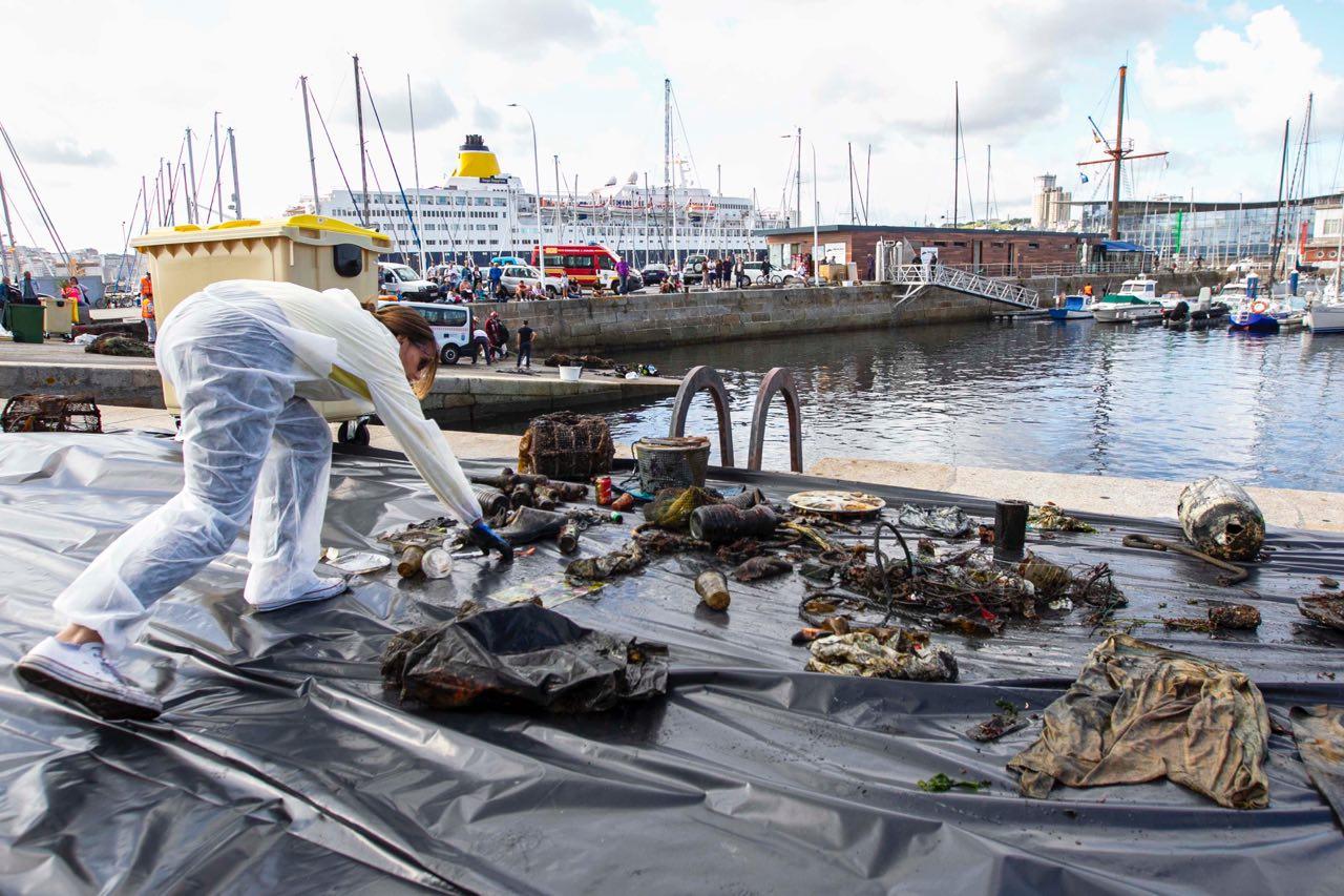 La basura quedó expuesta en el Puerto de A Coruña con el objetivo de visibilizar todo lo que se escondía en las profundidades.