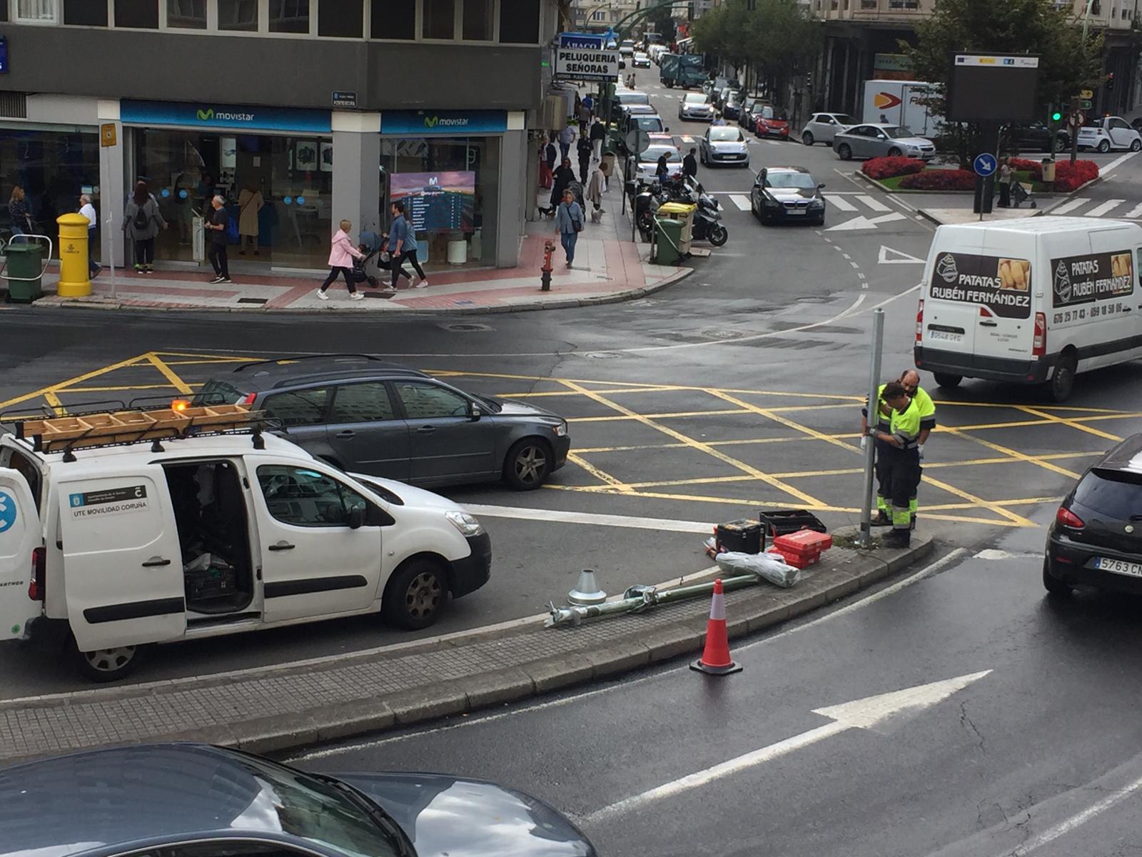 Un vehículo derriba el semáforo del túnel de la plaza de Pontevedra, en A Coruña
