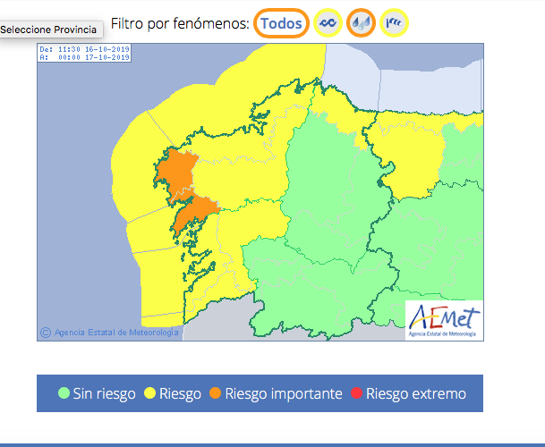 En concreto, el aviso se mantendrá hasta las 15,00 horas de este miércoles en el suroeste de A Coruña y hasta las 12,00 horas en el oeste de esta provincia.