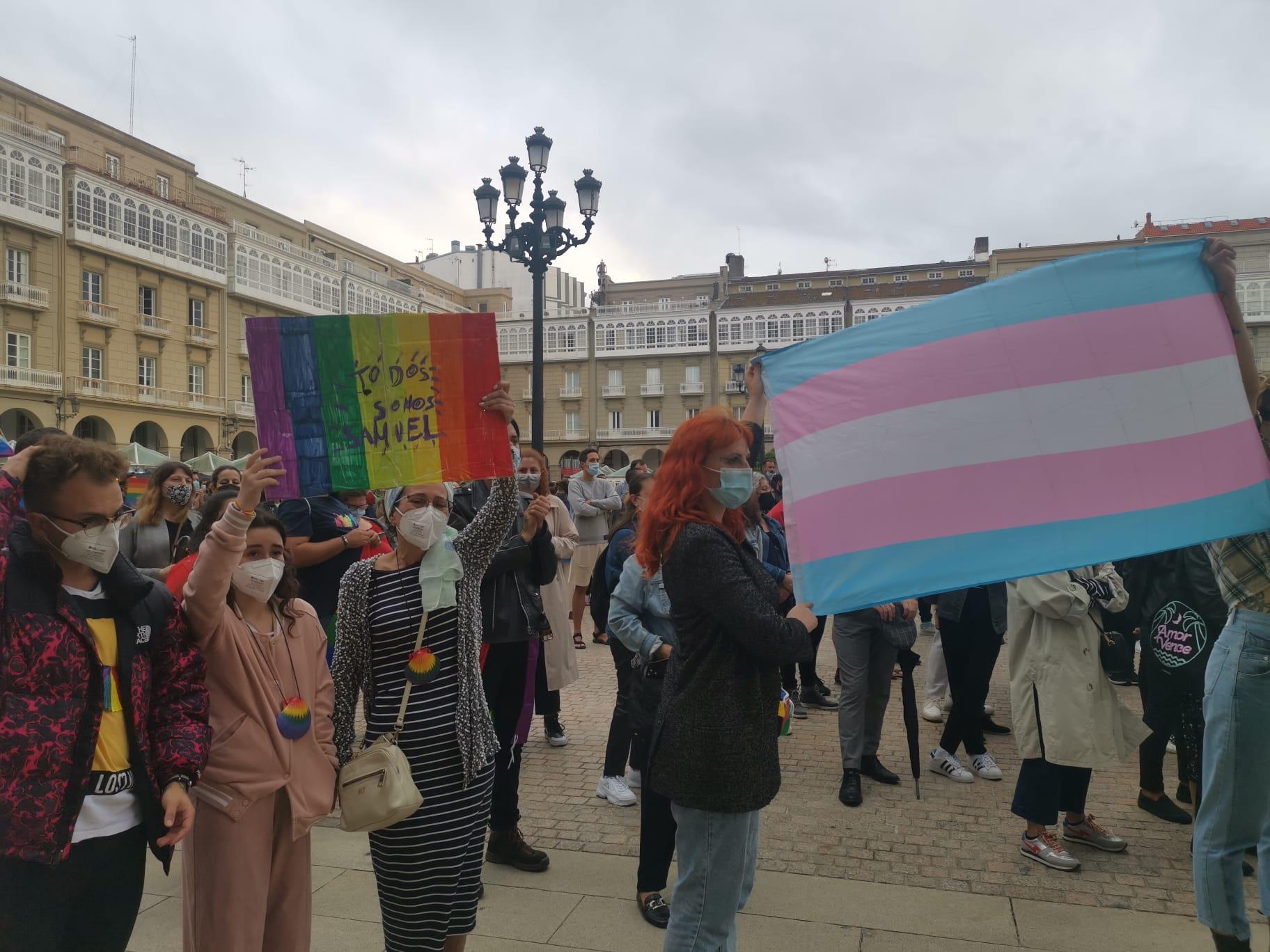 Centenares de personas en María Pita lucen banderas arcoiris y pancartas de apoyo #XustizaParaSamuel pic.twitter.com/ruxsYN4SSV