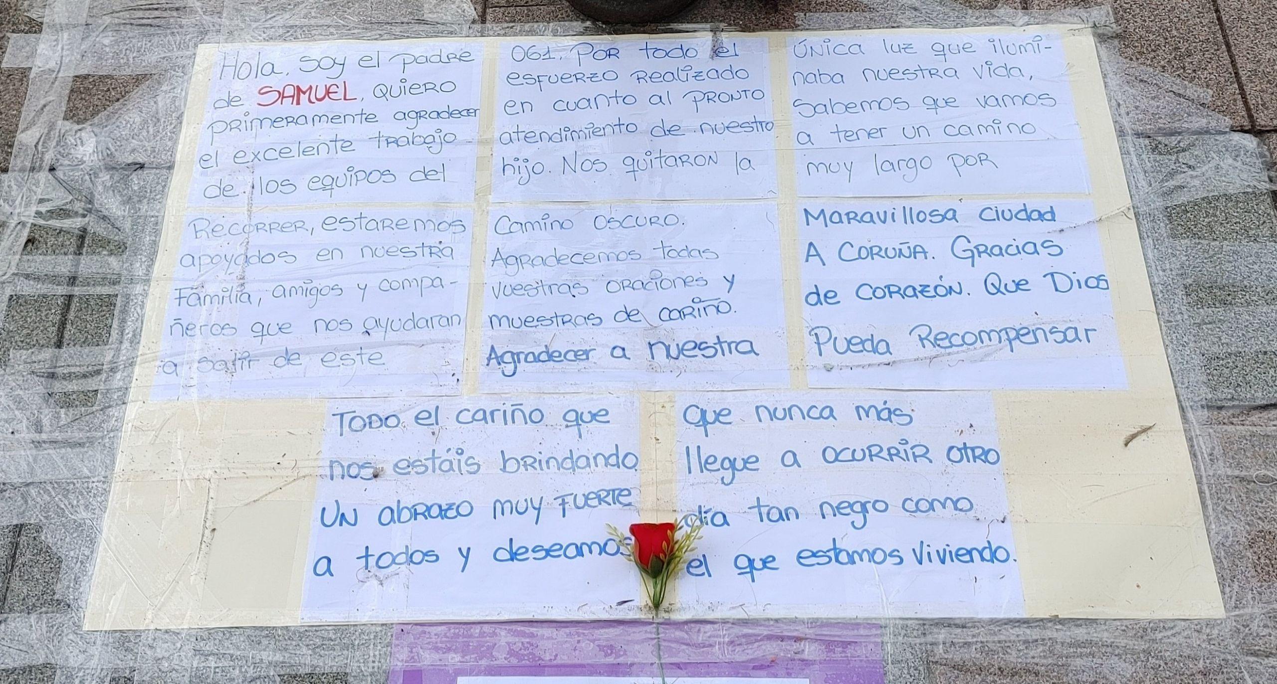 En el mismo lugar hubo hace semanas otro altar improvisado en el que decenas de amigos, familiares y coruñeses en general mostraron su condena por el asesinato y dejaron muestras de cariño hacia el fallecido y sus allegados. Incluso el padre del joven hizo llegar al lugar una serie de mensajes repartidos en diversos papeles en los que agradecía las oraciones y muestras de cariño y deseaba que "nunca más llegue a ocurrir otro día tan negro como el que están viviendo".