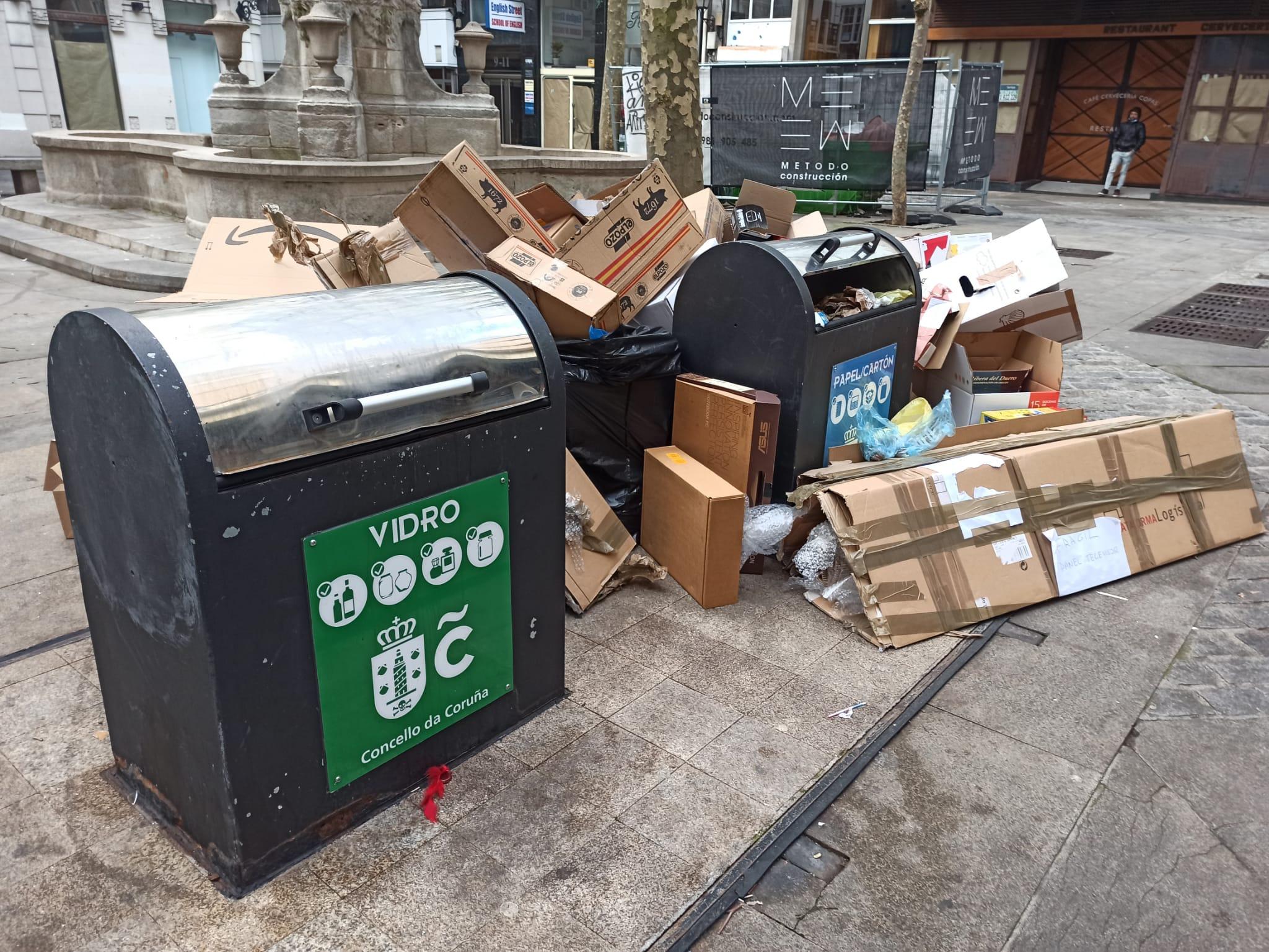 A Coruña amanece llena de basura debido a los conflictos y la celebración del Entroido