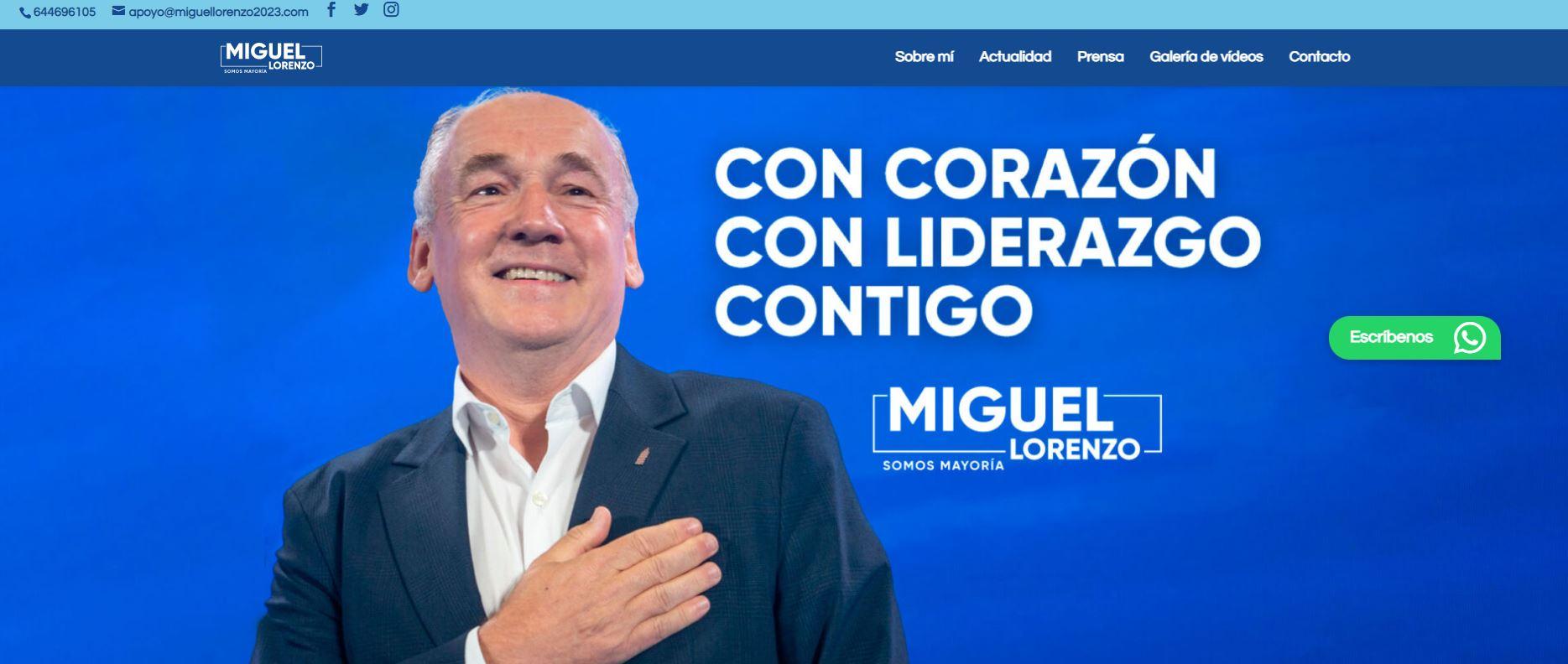 El portavoz de campaña de Lorenzo, Roberto Rodríguez, detalló las herramientas presentes en la web oficial del candidato, un espacio que definió como "una ventana abierta a quienes quieran conocer el camino de Miguel Lorenzo hacia las municipales" y apuntó sobre el WhatsApp habilitado para comunicarse con la ciudadanía que uno de los objetivos es que "todos los barrios resuelvan sus problemas y se atiendan sus necesidades".