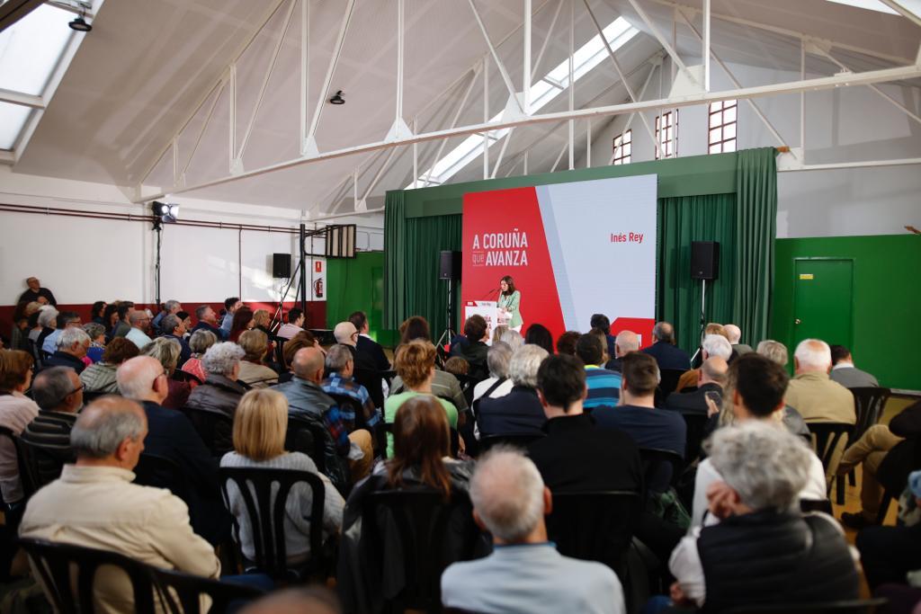 Por su parte, Inés Rey se ha mostrado crítica con los gobiernos anteriores a su mandato, señalando que con PP y Marea se perdieron ocho años por su "falta de gestión". Por el contrario, alabó la labor de su partido diciendo: "En esta ciudad, se avanzó y la modernización vino de los gobiernos socialistas".