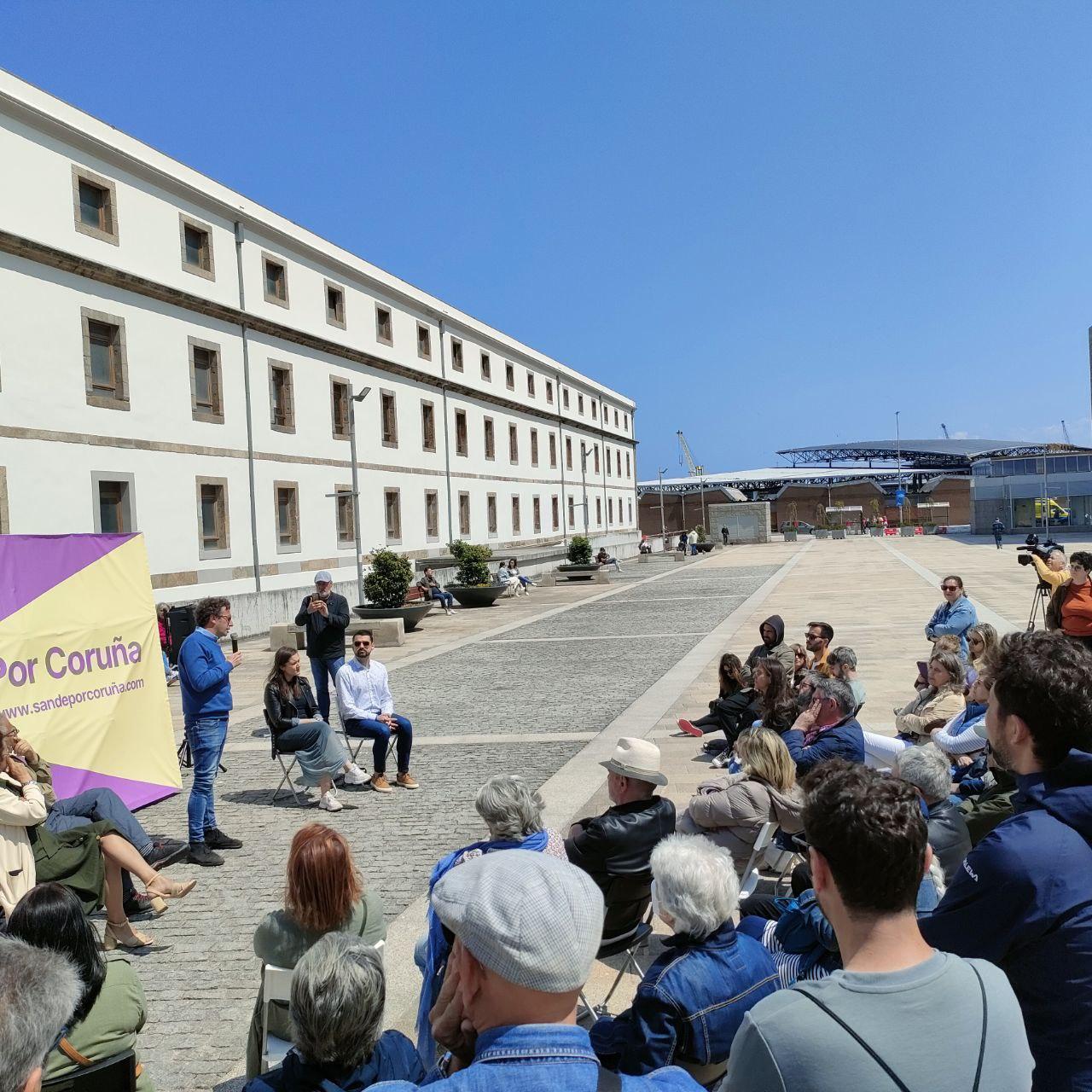 Este mediodía tuvo lugar el acto de Por Coruña en la plaza de Tabacos donde Borja San Ramón (Podemos) hizo un cariñoso recuerdo a José Manuel García Buitrón y defendió la candidatura conjunta del partido como "a chave do Concello para o vindeiro mandato". Eva Solla, coordinadora nacional de EU, recordó que "José Manuel Sande é a garantía da protección dos dereitos sociais fronte unha Xunta de Galicia que destrúe os servizos públicos na cidade, dende a Sanidade ao seu bloqueo de asuntos como a liberación do porto, o CHUAC ou a preocupante falta de vivenda pública".