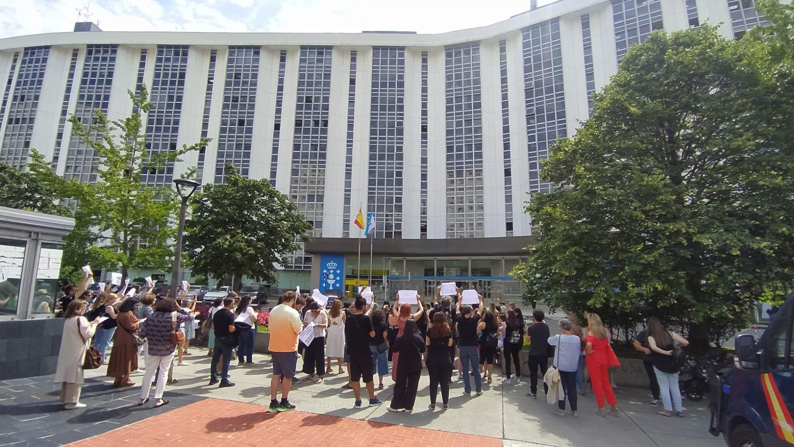 Esta misma protesta tuvo lugar a la misma hora frente a la Delegación de la Consellería de Educación.