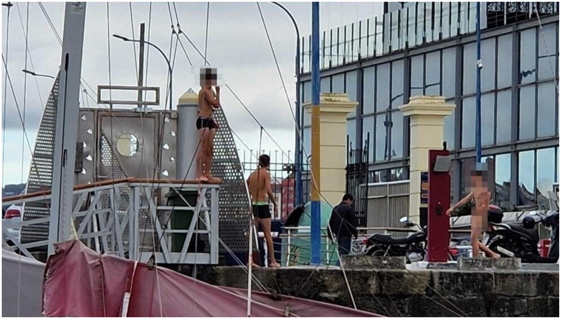 En las imágenes se puede ver a estos chicos en el muelle, dos de ellos se encuentran en bañador y otro desnudo, mientras el resto del grupo permanece sobre la calzada. Además, en una de las imágenes uno de ellos aparece subido a las propias instalaciones del Puerto.
