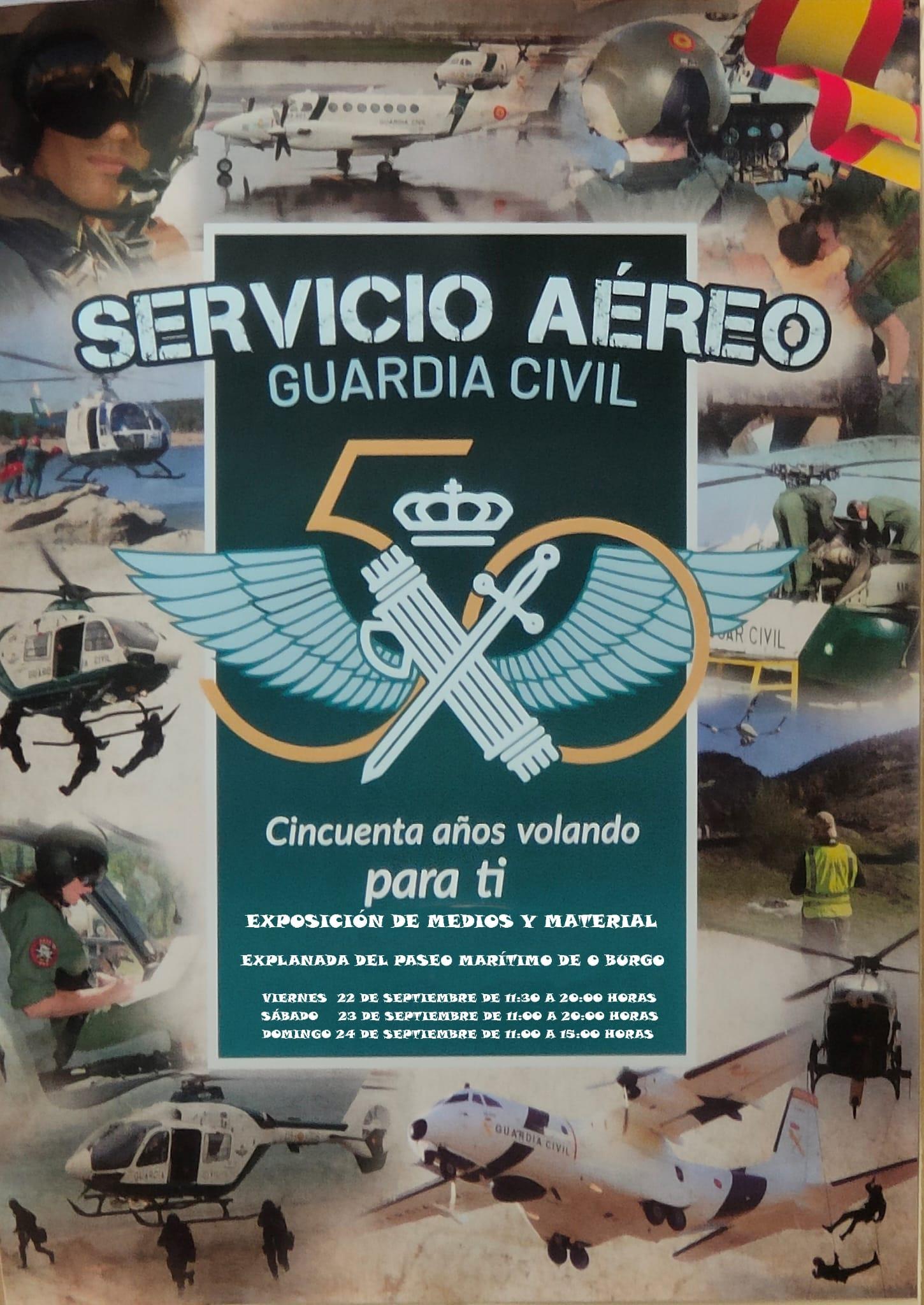 La Guardia Civil celebrará el aniversario de su Servicio Aéreo en Culleredo. Lo hará con una exposición que se podrá ver durante este fin de semana en la explanada del paseo marítimo de O Burgo, en Culleredo (A Coruña). La muestra servirá para conmemorar el 50 aniversario de este unidad a nivel nacional y los 25 años de su llegada a Galicia.