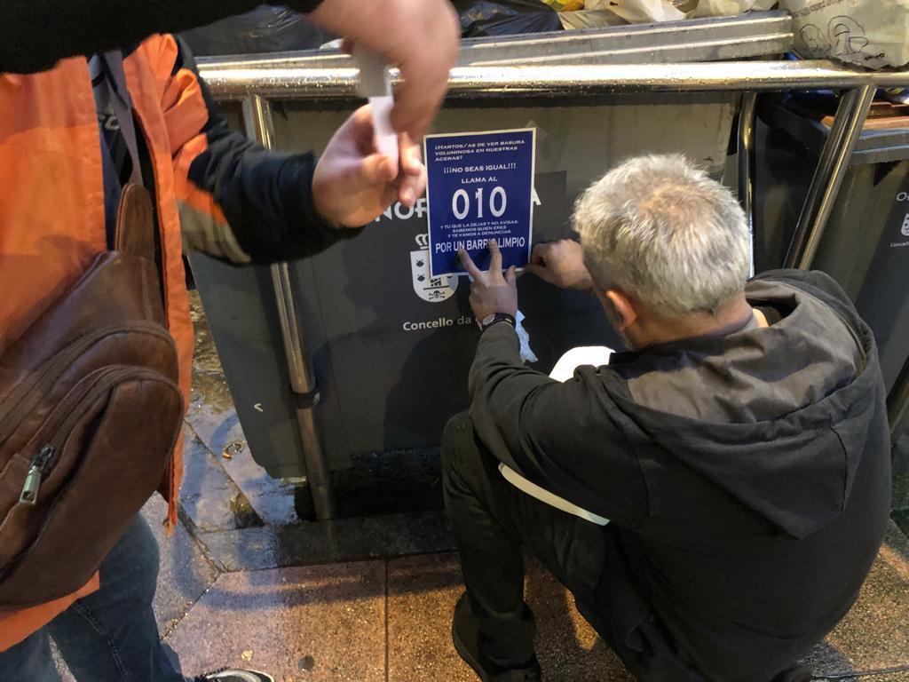 Desde esta semana en los contenedores de la zona están colocados carteles en los que se puede leer: "¿Hartos de ver basura voluminosa en nuestras aceras? No seas igual, llama al 010". En otra parte de la cartelería se indica: "Y tú que la dejas y no avisas, sabemos quien eres y te vamos a denunciar. Por un barrio limpio".