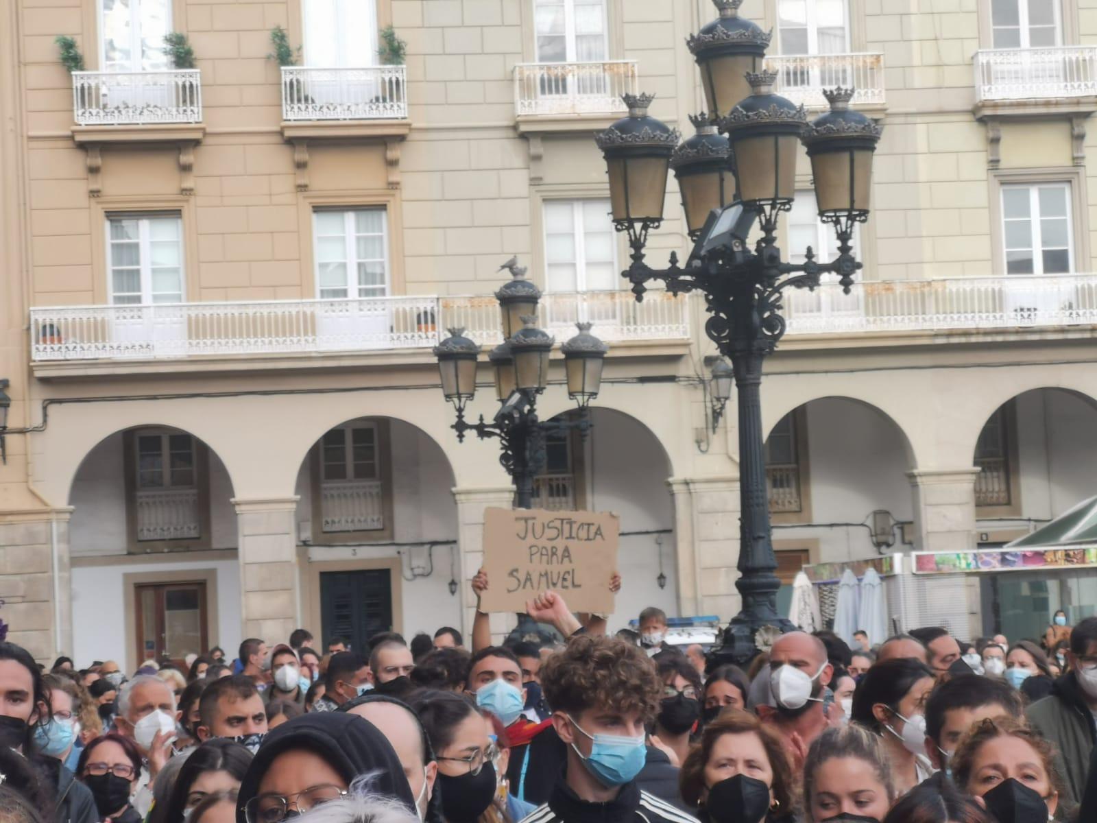"Tengo derecho a una vida sin etiquetas, no soy tu chiste", "Su amor no hacía daño, vuestro odio sí" o "Maricón no debería ser lo último que escuches antes de morir", son los mensajes que aquellos que conocían a Samuel quisieron transmitir a través de pancartas, que se unieron a otras que mostraron ciudadanos de A Coruña donde reclamaban "Justicia para Samuel" o expresaban indignación con mensajes como "No soporto la rabia que tengo". En señal de apoyo, estuvieron presentes en María Pita la alcaldesa, Inés Rey, acompañada de diferentes miembros de la corporación municipal, además del presidente del PSdeG, Gonzalo Caballero; políticos del BNG de la ciudad como Francisco Jorquera, Gonzalo Trenor por parte de los populares y también diferentes miembros de Marea Atlántica, entre otros.